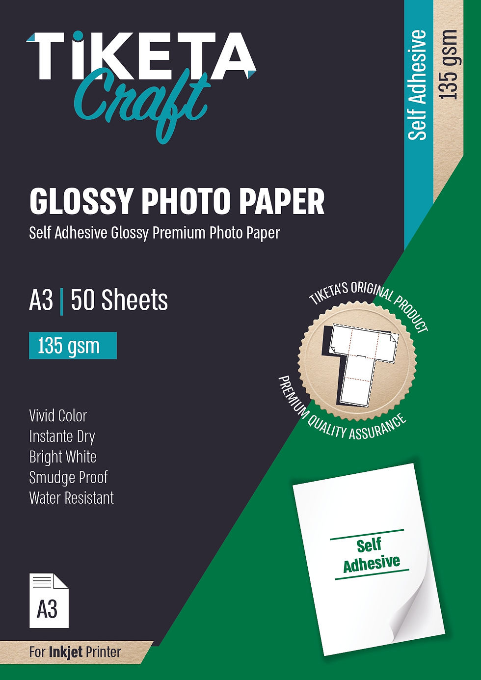 Self Adhesive Glossy photo paper 135 gsm -A3